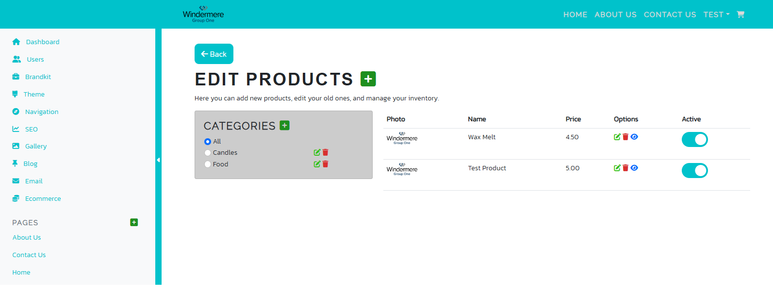 If the site is a e-commerce site, products can be added and edited here. The store's categories can also be added, edited, or deleted here as well.